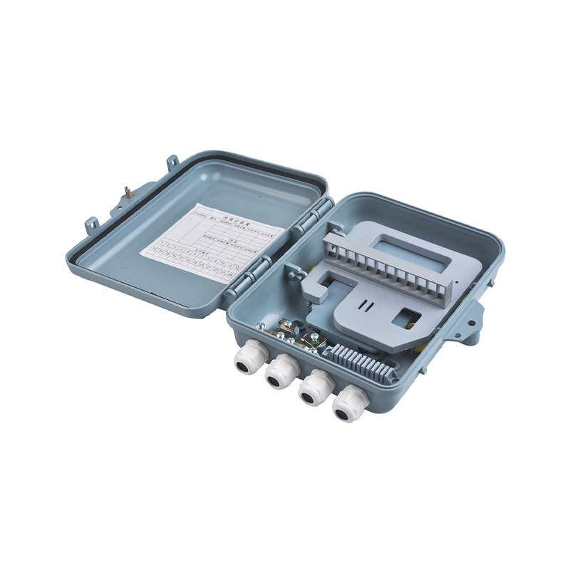 Monteringsbeslaget på siden af GSG-FDB-12A fiberoptisk distributionsboks giver mulighed for nem og sikker montering på en væg eller stang, hvilket sikrer stabilitet og forhindrer utilsigtet fjernelse. Designet inkluderer også et lille håndtag eller lås for hurtig og nem adgang til interne komponenter, når det er nødvendigt.