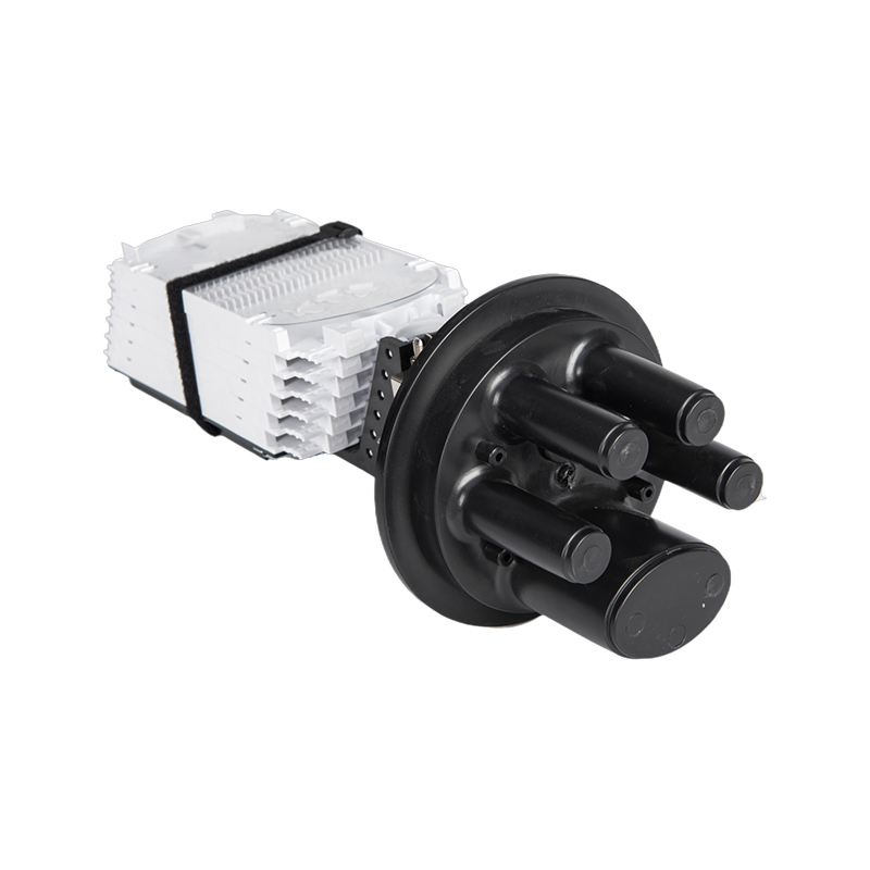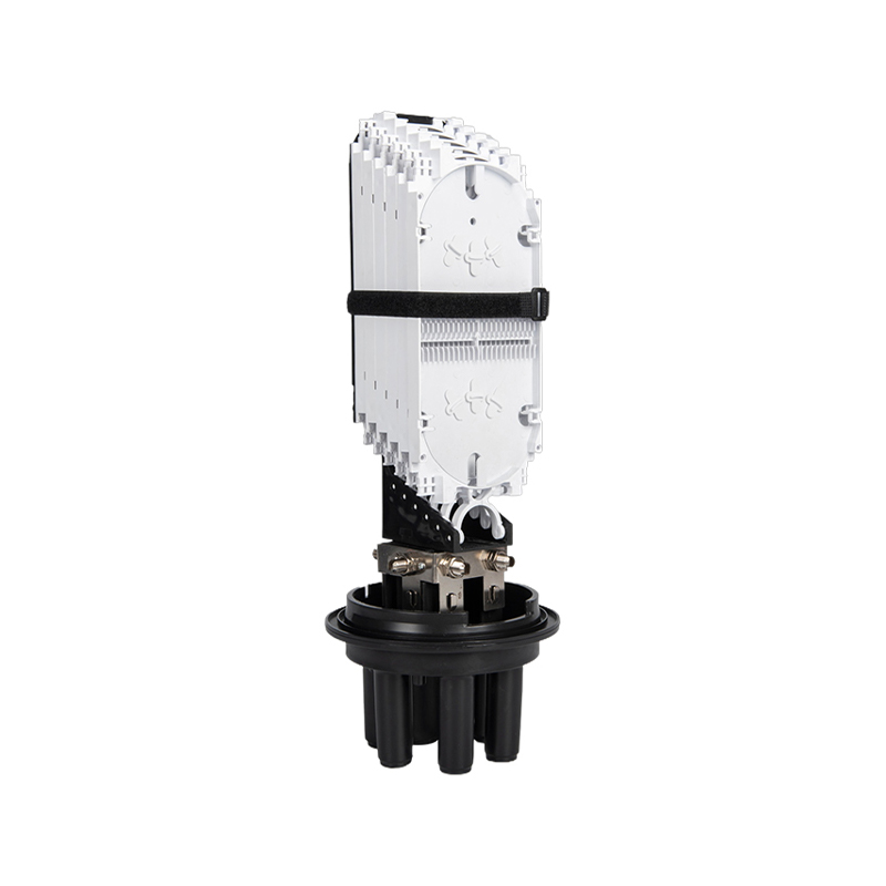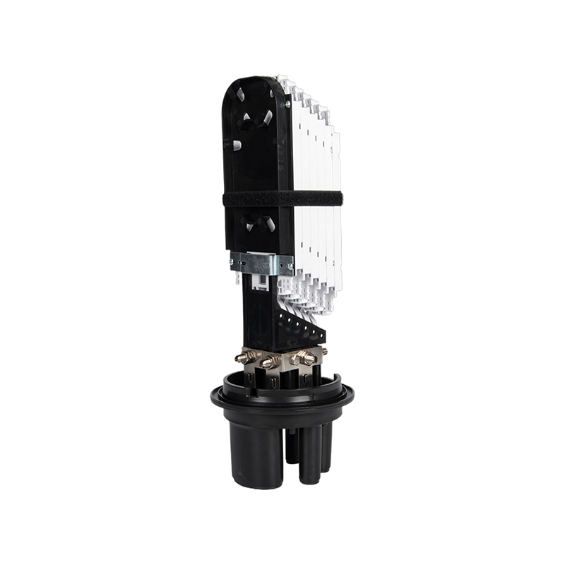 GSGSC107 fiberoptisk splejsningslukning inkluderer en køleplade for at hjælpe med at regulere temperaturen inde i boksen, forhindre overophedning og sikre optimal ydeevne. Den sorte base har flere porte for nem kabelindgang og -udgang, hvilket giver sikre og organiserede forbindelsespunkter til fiberoptiske kabler.